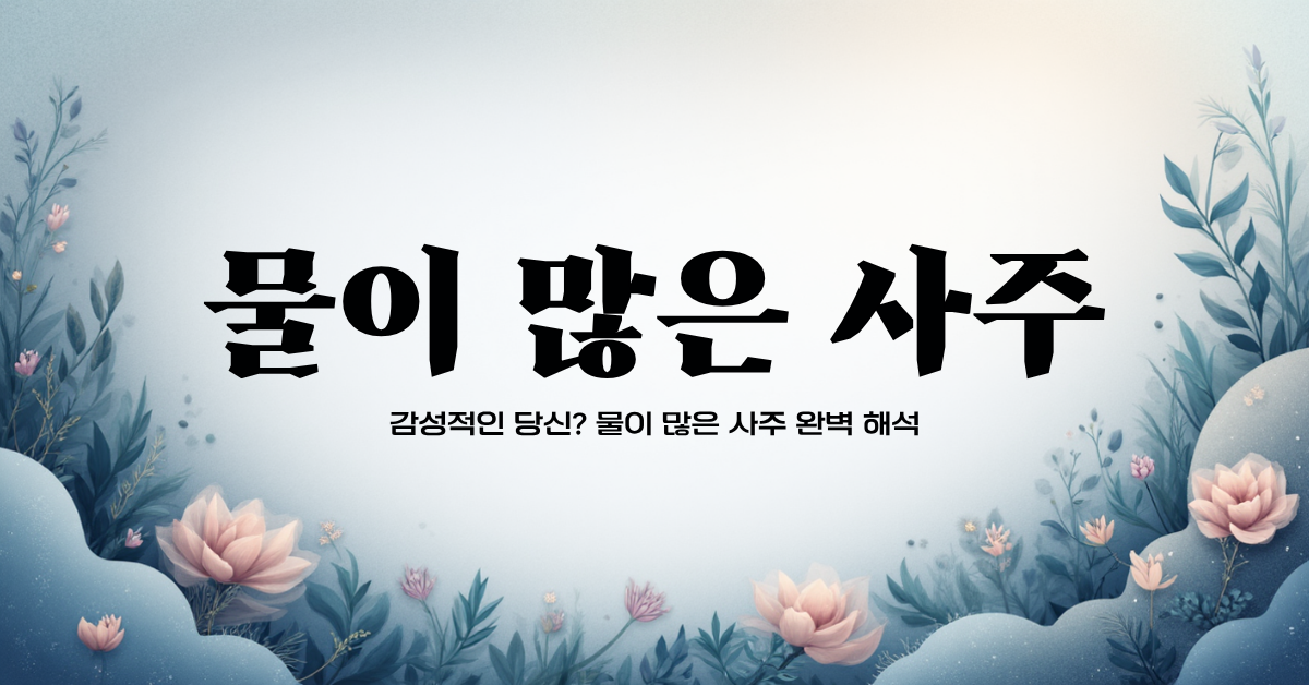 도입부 요약: 사주명리학에서 수(水)는 물, 지혜, 감성을 상징합니다. 사주에 수가 많다는 것은 흐르는 물처럼 유연하고 깊은 지혜를 가졌다는 뜻입니다. 이 글에서는 수가 많은 사주의 정확한 의미부터 성격, 건강, 직업, 그리고 오행 균형을 맞추는 방법까지 완벽하게 정리해드립니다.